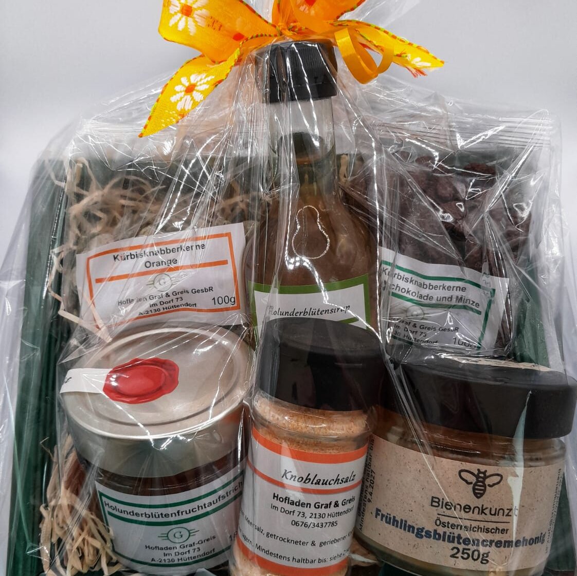 Verpackung: Geschenkkorb (22x19x8 Karton) (incl Verpackung ca 24x30x15)